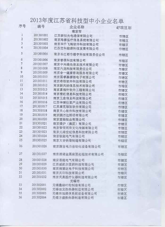 公司被認(rèn)定為“江蘇省科技型中小企業(yè)”